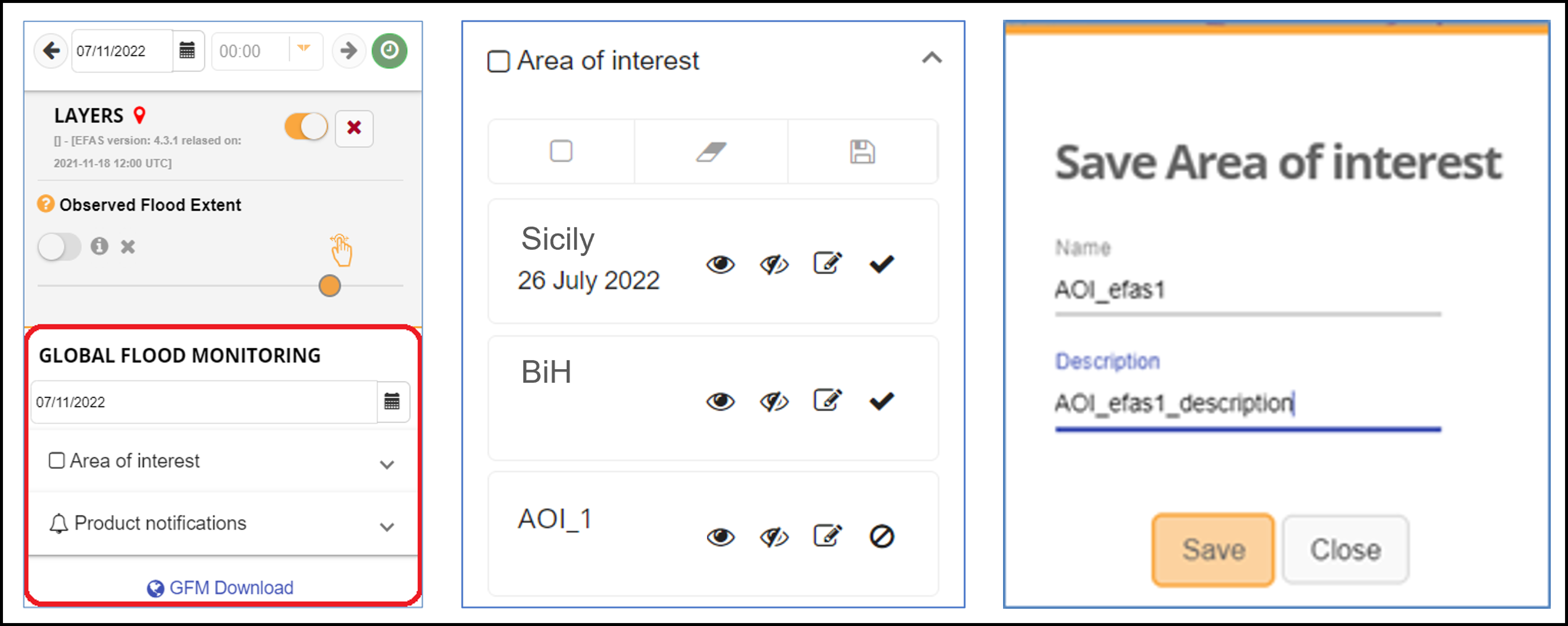 On clicking on the “GFM” icon, as shown below, GFM-registered users can draw their own areas of interest (AOIs).