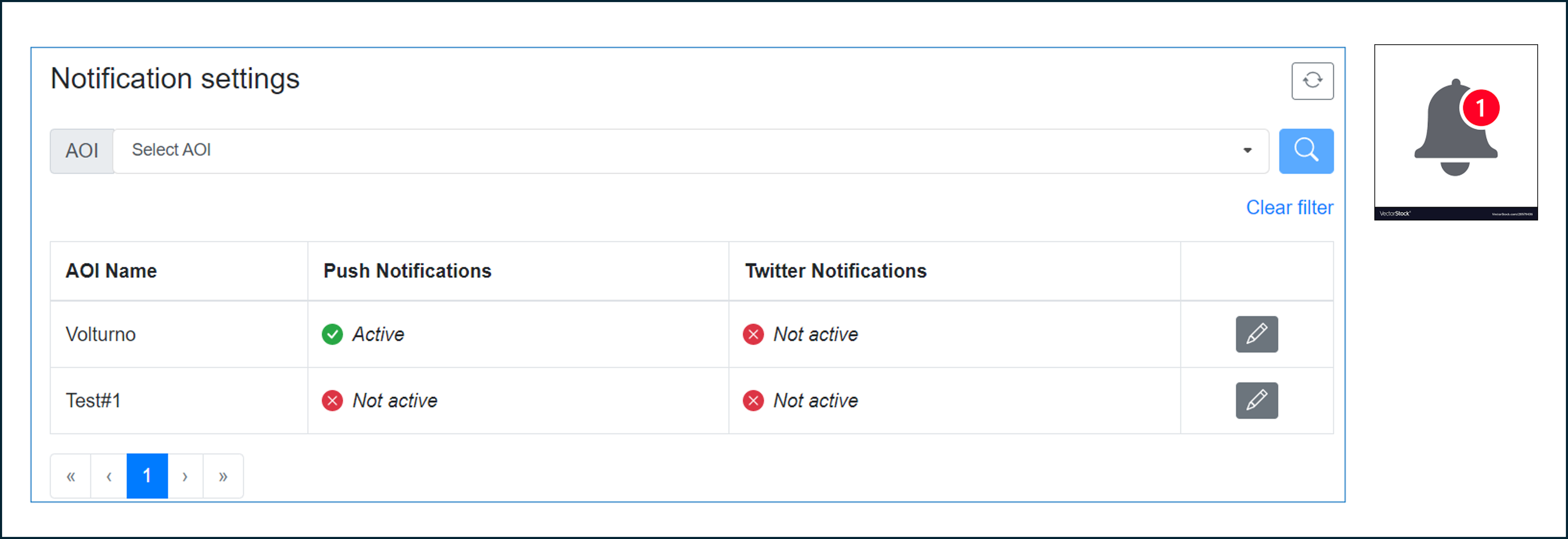 Note that the maximum number of AOIs for each user is limited to 25. Once the limit is reached, a new AOI can be added only if a previous AOI is deleted.